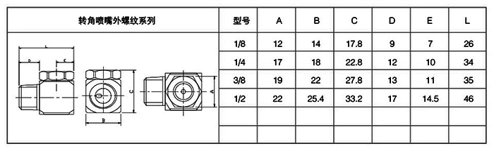 AA/A系列金属喷嘴的特点是能产生空心锥形喷雾形状,喷射区域成环形,喷雾角度为51°-114°。该类喷嘴能在大范围的流率和压力下产生分布均匀,液滴大小为小到中等的喷雾。即使是在低压条件下,AA/A系列金属喷嘴亦能对液体进行良好的雾化应用及产生良好效果。对于要求快速热交换或要求有效的空悬液滴的冲击应用中,这种效果尤其明显。AA/A系列金属喷嘴具有独特的旋流腔结构,其大而通畅的流通道,能减少或消除阻塞现象。AA系列金属喷嘴为外螺纹接头,A系列金属喷嘴为内螺纹接头。